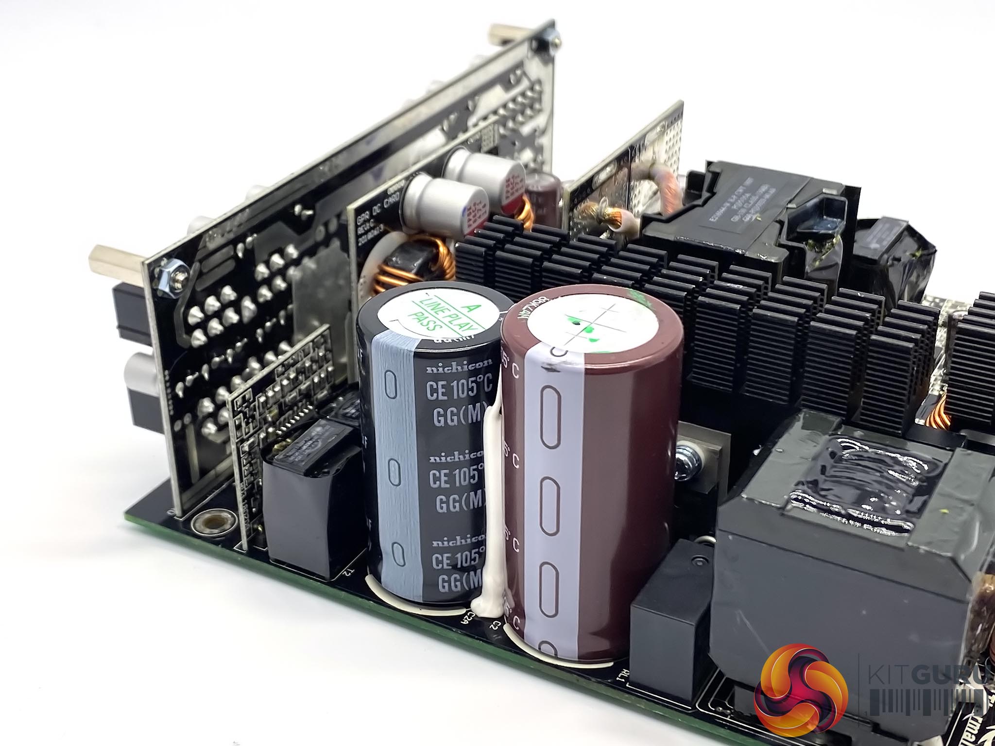 The primary hold up caps are both high grade 105C Japanese models from Nippon Chemi Com (KMR series) and Nichicon – rated 400v 470uf and 400V 390uF respectively. Companies will often mix and match capacitors from specific families depending on what is available. This does not pose any concerns – it is good to see Thermaltake ensuring that high grade capacitors are being used throughout.