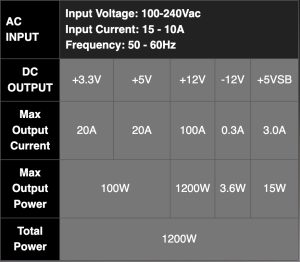 The PT 1200W is capable of delivering 100A on the +12V rail, and 20A on both +3.3V and +5V rails.