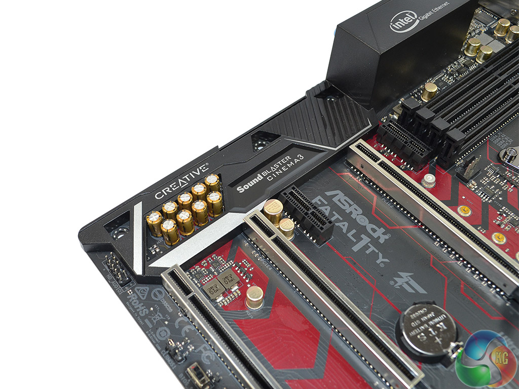 The Audio is provided by a Realtek ALC1150 codec that is unshielded and sits underneath the “Gaming Armour” on a isolated PCB. Nichicon Fine Gold Series capacitors and a Texas Instruments NE5532 headset amplifier further enhance the audio system.