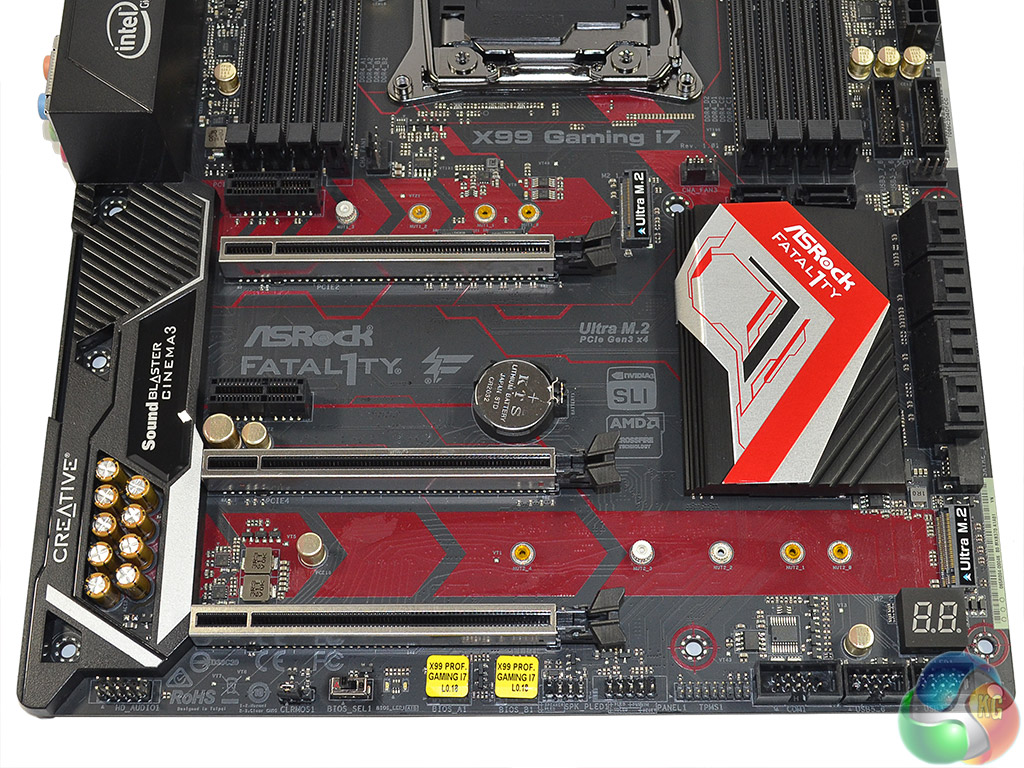 The BIOS chips have an unsightly yellow sticker on them which most buyers should consider removing to improve the aesthetic appeal. There's also a debug code reader and the first M.2 slot located in this same area.