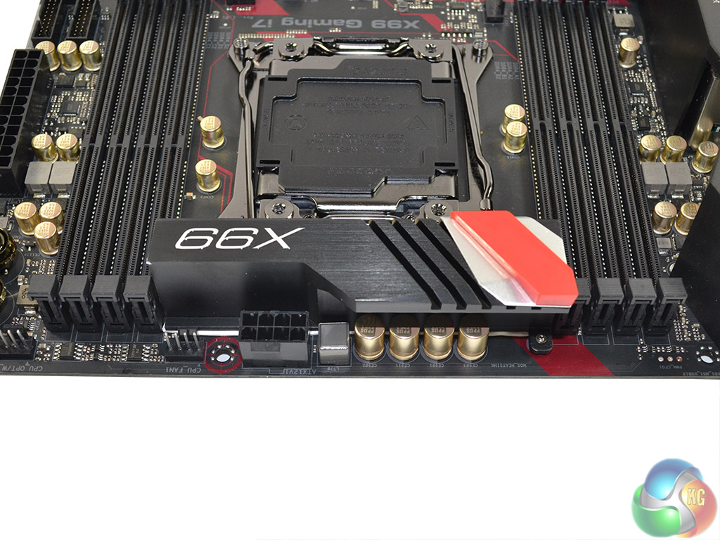 The CPU socket has a 12 phase hybrid-digital VRM solution and draws in power from a CPU EPS 8 pin connection. Capacitors in proximity to the CPU socket are ASRock's gold-coloured 12,000-hour (12k) rated units.