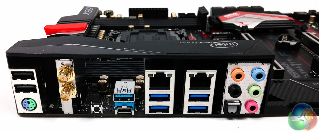 The rear I/O offers a nice blend of connectivity with two legacy USB 2.0 ports, a PS/2 combo port, four USB 3.0 ports, two USB 3.1 ports of which one is type-C, dual Intel LAN ports that support teaming, a clear CMOS button and six audio jacks (5 analogue 1 digital).