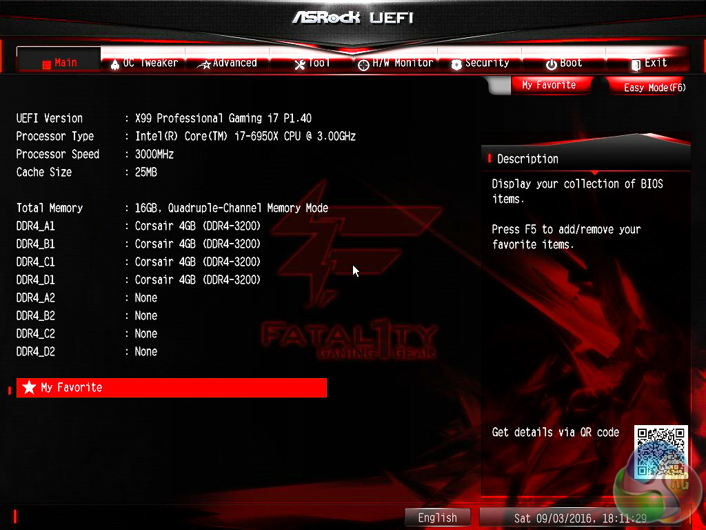 ASRock's UEFI hasn't changed much since our most recent ASRock X99 review, which is no bad thing as we concluded it was “well laid-out, easy to use, and full of relevant user-customisable parameters”.