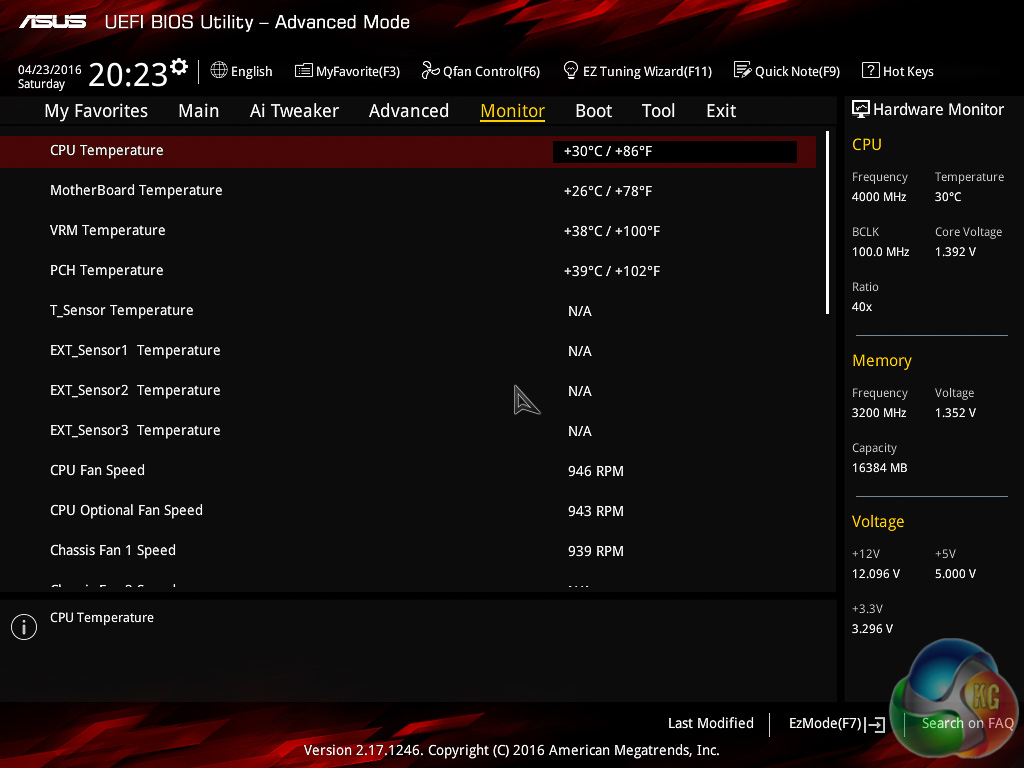 The advanced tab has all the other advanced tweaking and tuning options that aren't CPU or memory related, anything related to the USB, networking or other storage controllers is likely to be found here. The monitoring tab is where you can see all temperatures and fan speeds, as well as set fan speeds and profiles.