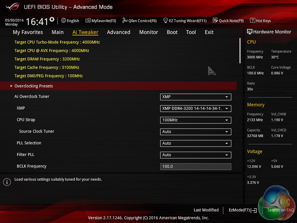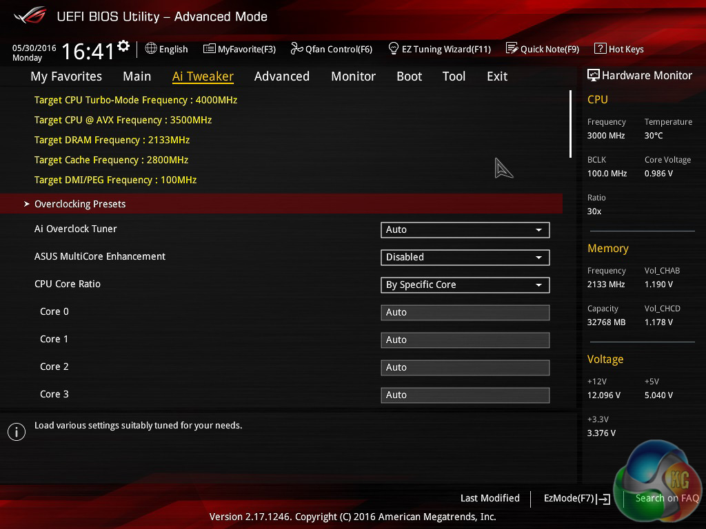 ASUS has a baked-in Broadwell-E 10 core preset, under overclocking presets, which opts for the following configuration: