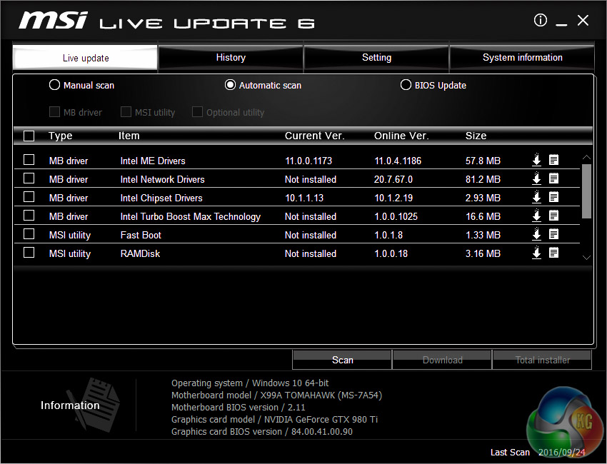 Live Update 6 is arguably the second-most useful utility after Command Center and definitely worth an install if you're looking to keep your drivers and MSI-supported applications up to date. USB Speed Up is there to help with either UASP or BOT modes to speed up USB device transfer rates. In practice most USB devices and hardware controllers seem to exercise this function, in Windows 10 at least, without the need for any third party software above and beyond the correct drivers.