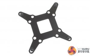 The backplate can then be mounted to the motherboard, with four threaded standoffs which need to be screwed onto each of the corner screws. There are two further brackets which then need to be fitted. It’s worth noting that these brackets orientation will dictate which direction the cooler will face. These two brackets sit atop the four threaded standoffs and are mounted using four small screws.