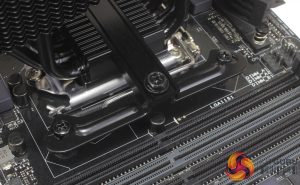With the bracket fitted to your motherboard, the cooler itself can then be mounted starting with the cooler mounting bridge. This bridge needs to be passed through the bottom of the cooler and with this in place, you can apply your thermal compound, place the cooler atop your CPU and screw the cooler down using a further two screws.