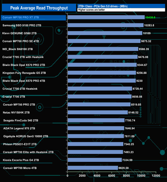 Although the test result of 10,438MB/s is some way off the official maximum, it is still good enough to put the drive in the top spot of the results chart.