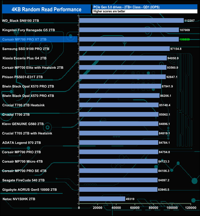 We used CrystalDiskMark 8‘s custom settings to test the 4K random read performance of the drive through a range of queue depths. The setup for the tests is listed below.