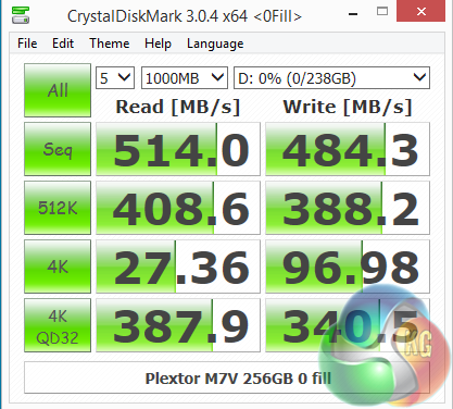 As can be seen from the two CrystalDisk Mark test scores the controller isn't really that fussed what type of data the drive is presented with.
