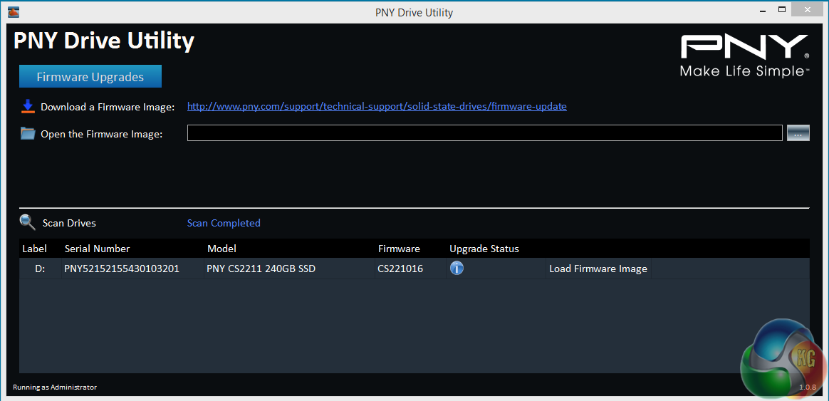 Compared to many of its competitors PNY are a fair way behind with the software support for the drive. At the time of writing the only software supporting the CS2211 is PNY's Drive Utility which has just one function – namely to easily enable firmware updates for the drive.