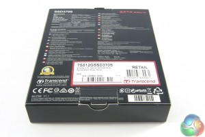 The front of the Transcend SSD370S box has a small list of the drives features as well as the capacity clearly labelled.