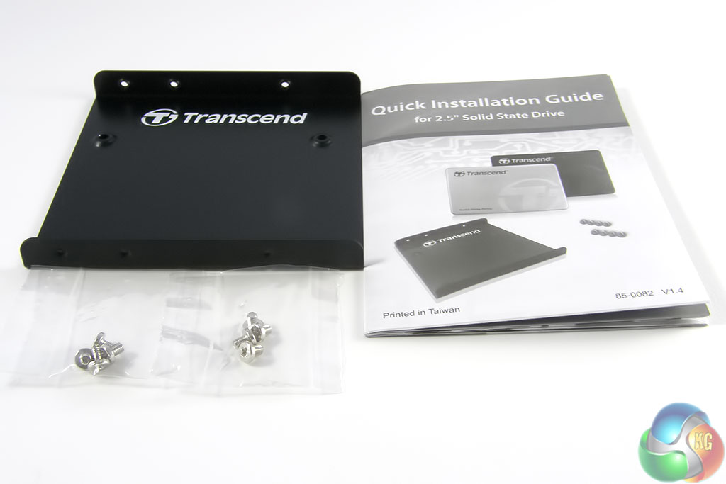 Inside the box there is a 2.5in to 3.5in mounting bracket, mounting screws, a quick installation guide and a warranty card.