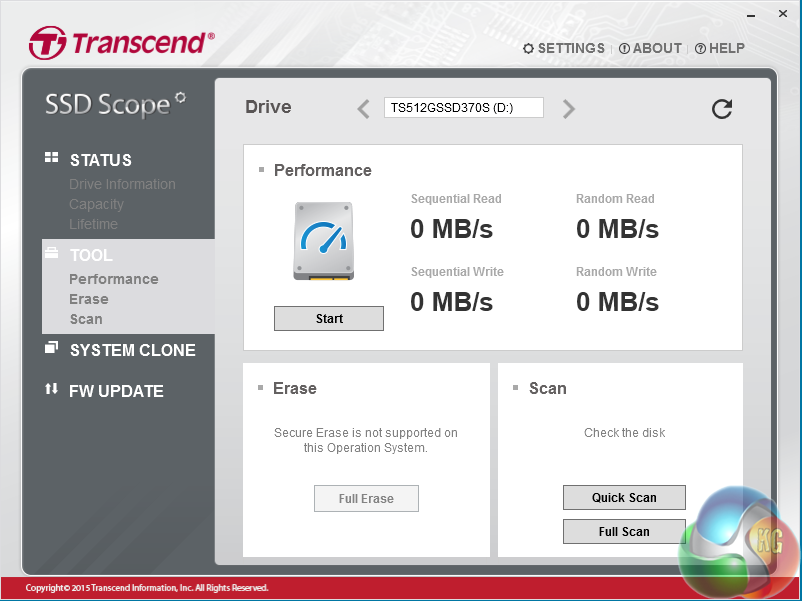 The Tool section has a performance tester, secure erase facility and both quick and full scan options for the drive. System Clone does what it says on the tin as does the firmware update section.