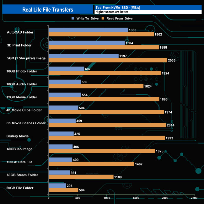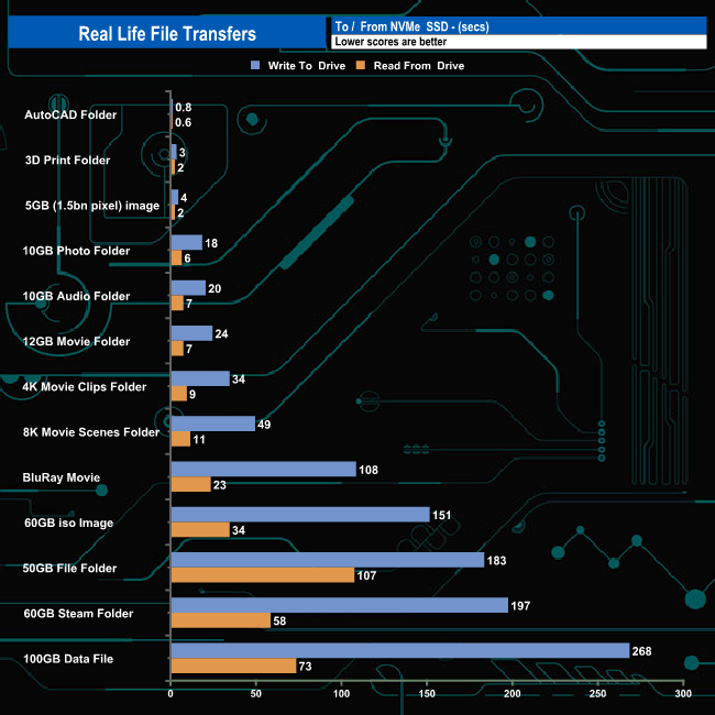 Switching over to reading and writing the data to another NVMe drive saw, as you might expect dramatic leaps in performance, particularly when it came to reading the data from the drive,