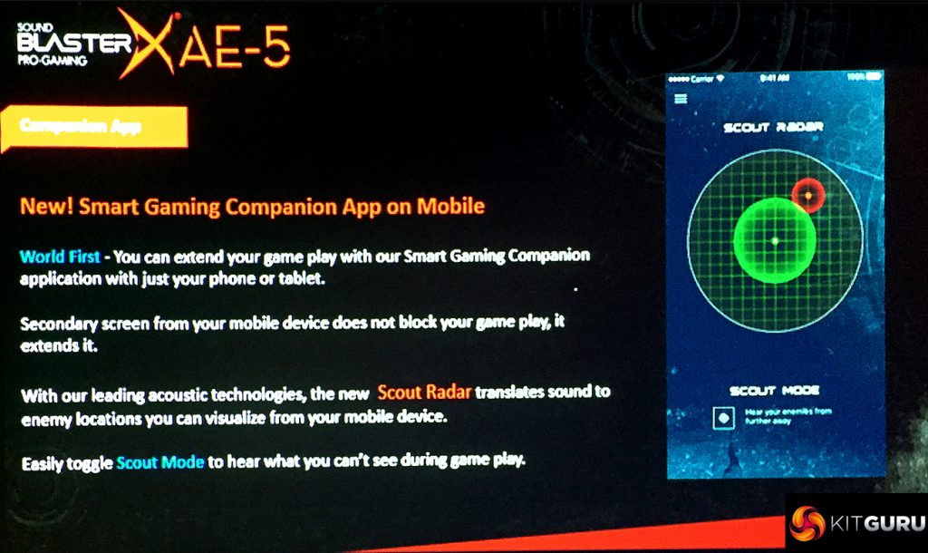 Scout Radar on the other hand is a world first which has very little to do with pretty colours – and everything to do with giving Creative customers a massive in-game advantage. This app installs on your smartphone and links into the Creative audio system – acting as a secondary screen. In what has to be one of the ‘mother of all advantages', the Scout translates the sound field being processed by your Creative sound card – and presents it as a visual radar field.