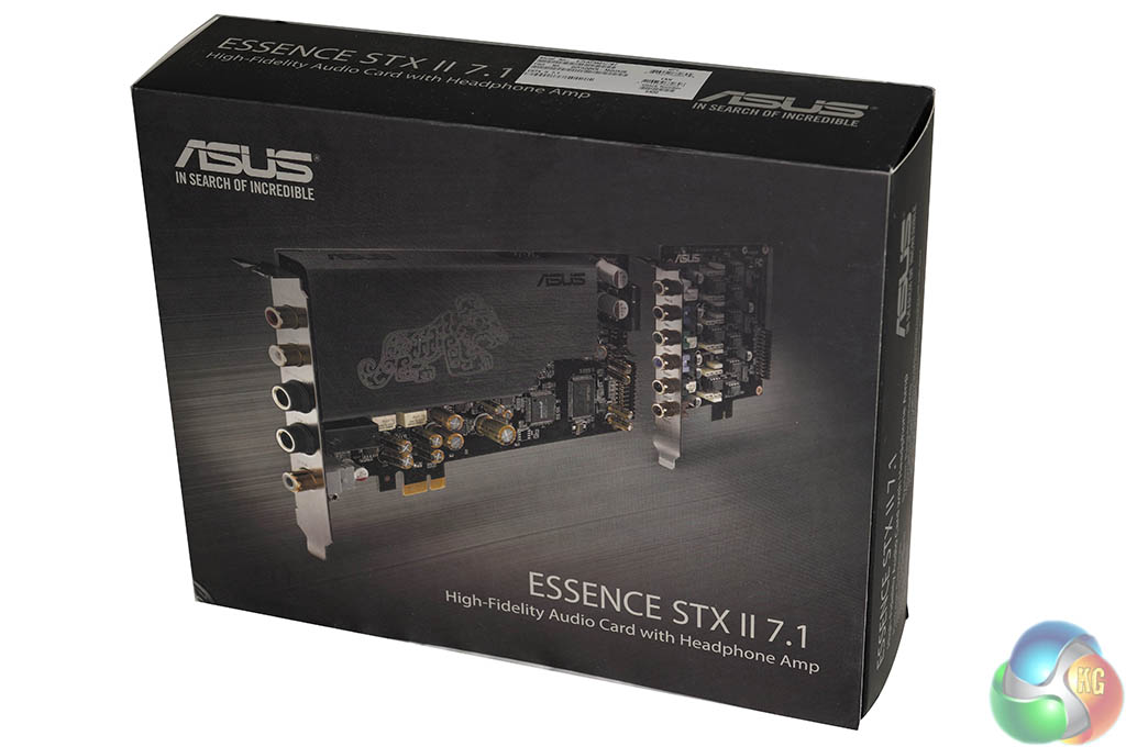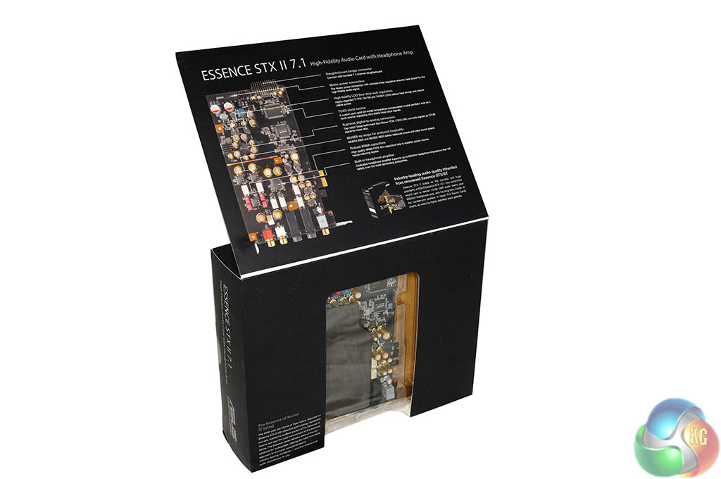 The Essence STX 11 7.1 Sound card ships in a dark box with an image of product clearly visible on the front.
