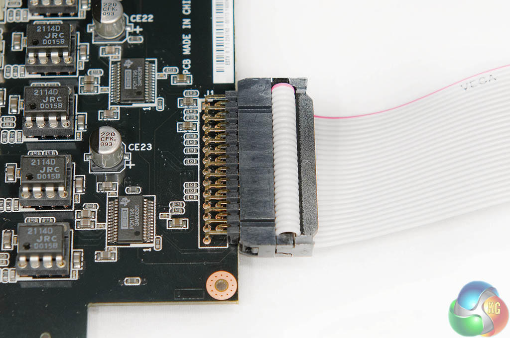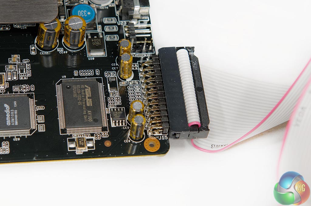 What looks like an old fashioned IDE cable in the box, is used to ‘bridge' the connection between the main card and the daughtercard. ASUS include a long enough cable to suit PCI Express positioning on any motherboard.