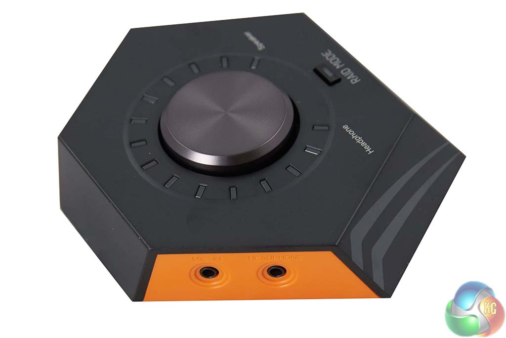 The Asus Strix volume control is a nice looking bit of kit that is meant to reside on your desk beside the keyboard. From here you can control volume and enable, or disable RAID Mode. The volume knob doubles up a a clickable switch to swap between headphone and speakers (if both are connected).