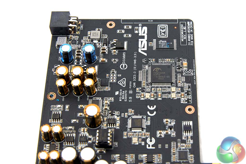 Asus have paired up the CM6632AX audio processor with full 192kHz/24 bit support and the CS5361 A/D Converter which has a rated 114dBa dynamic range.