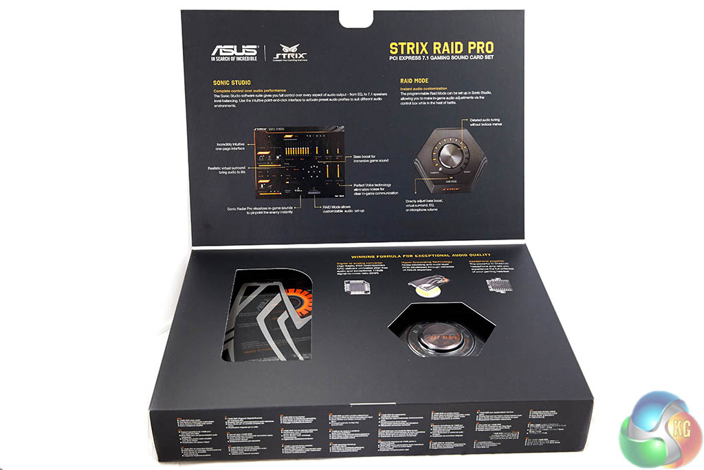 The rear of the box highlights various specifications including ‘instant audio adjustment' and ‘crystal clear audio'. Asus are keen to point out that they are using the ESS Sabre9006A DAC with a supported 116dB resolution. Underneath their graph they highlight ‘equivalent to 32 times clarity' which quite honestly seems somewhat meaningless to me.