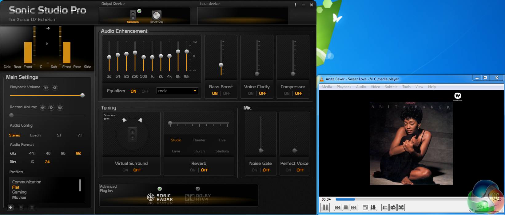 We selected a series of high resolution audio tracks to test the ASUS Xonar U7 Echelon with the Grado PS1000 headphones. We turned off all audio enhancements such as compressor, perfect voice and noise gate but opted for the rock equaliser setting to boost some of the frequencies. We like the fact that ASUS have included a BASS boost option in the driver.