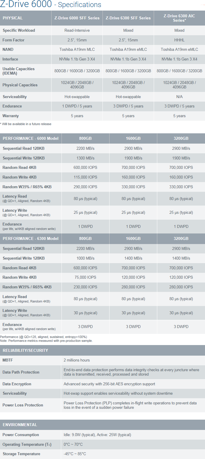 OCZ is currently sampling its NVMe-compliant Z-Drive 6000 and Z-Drive 6300 SFF models to key customers and partners.