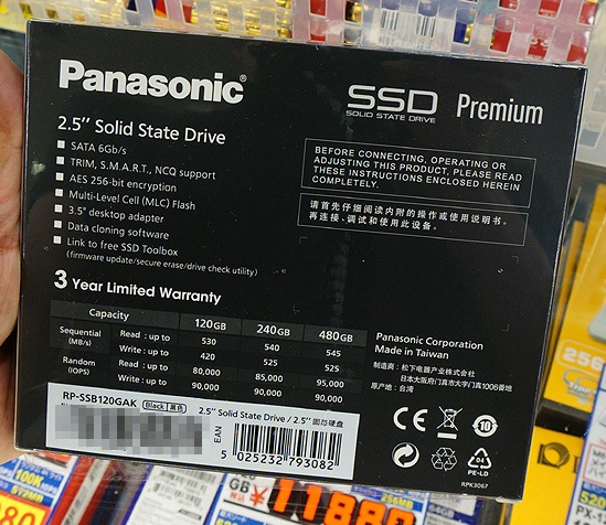 Akiba PC Hotline reports that at least one store in the famous Akihabara shopping district recently started to sell Panasonic’s Premium lineup of solid-state drives. The SSDs come in retail packages with bundled software and adapters to install the drives into desktop computers, just like all the other mainstream SSDs.