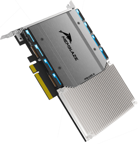 The Memblaze PBlaze4 solid-state storage solution is powered by PMC’s Flashtec NVM Express (NVMe) controllers, use PCI Express 2.0 x8 interface and come in either HHHL (half-height, half-length) or FLHL (full-height, half-length) card-type form factor. The drives can use either single-level cell (SLC) or multi-level cell (MLC) NAND flash memory, depending on requirements for performance and reliability.