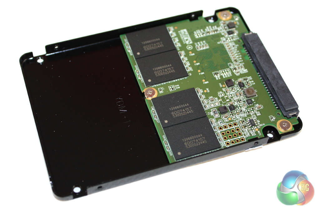 The Force LX occupies the same form factor as a 2.5” hard drive and measures 7mm tall, meaning it should be compatible with most laptops. We gain access to the internal components of the drive by removing two screws on either side of the casing. Two of these are covered with tamper-proof seals, meaning you will void your warranty if they are damaged.