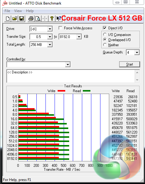 The Force LX achieved an impressive read score in this test, however the write score wasn't quite so impressive.