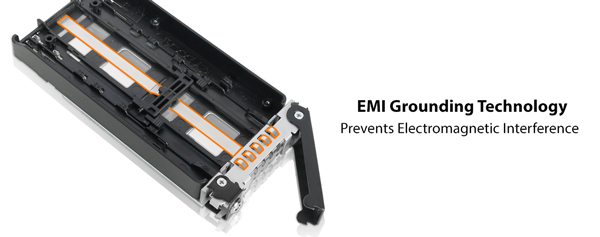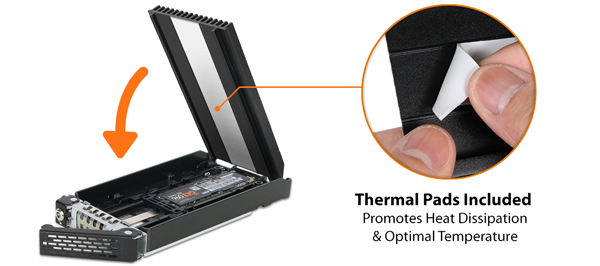 This adjustable locking mechanism means that all sizes of M.2 SSDs, including 22110 (110 mm) drives, can be installed inside the ToughArmour MB720M2K-B with minimal fuss. The enclosure also includes EMI Grounding Technology to ensure M.2 SSDs are properly grounded just like they would be when installing directly to the PC motherboard. Once the M.2 SSD is clipped in place in the bay, the drive will be grounded by the tray and the housing of the enclosure to protect against electrical damage.
