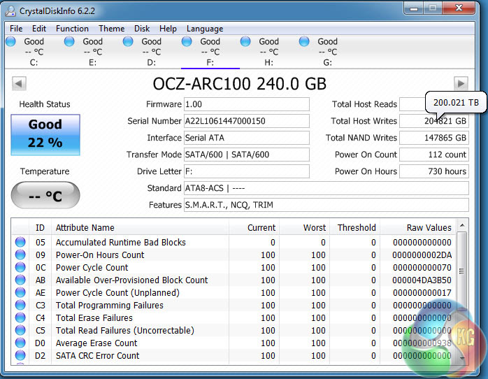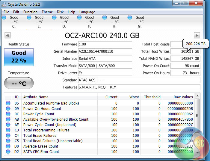 200TB with just over 20% health left? You’d think they’d die by then, but nope. I mean, who would write 200TB anyway? Nice to know the drive lasts a long time, thus saving money on buying new drives every so often.