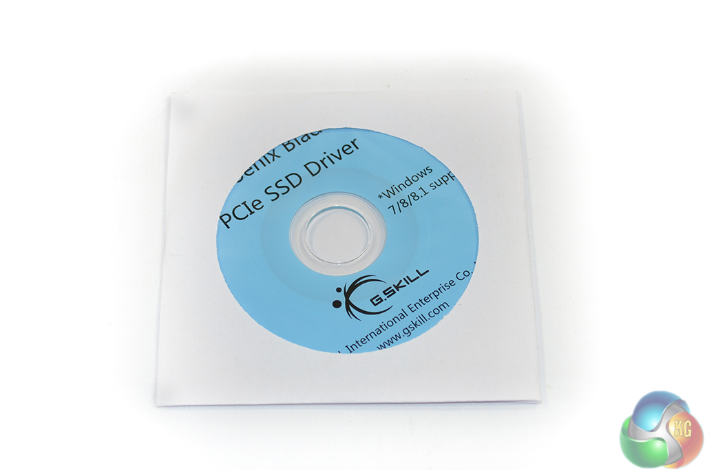 An additional bracket is supplied, allowing the drive to be used in a chassis with half-height PCIe expansion slots. The driver CD contains the software required to use the drive and to install Windows onto it.