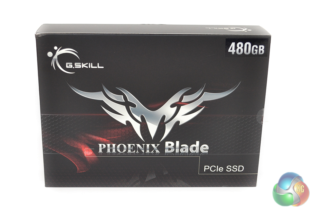 G.Skill ships the Phoenix Blade in a sturdy black box. A graphic which is similar to Corsair's new (and seemingly detested) gaming logo occupies the front side. A table of specifications in present on the rear.