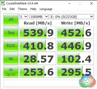 As you can see, our CrystalDiskMark results are pretty good. 4K QD32 performance is not the fastest out of drives we have tested but it is consistent.