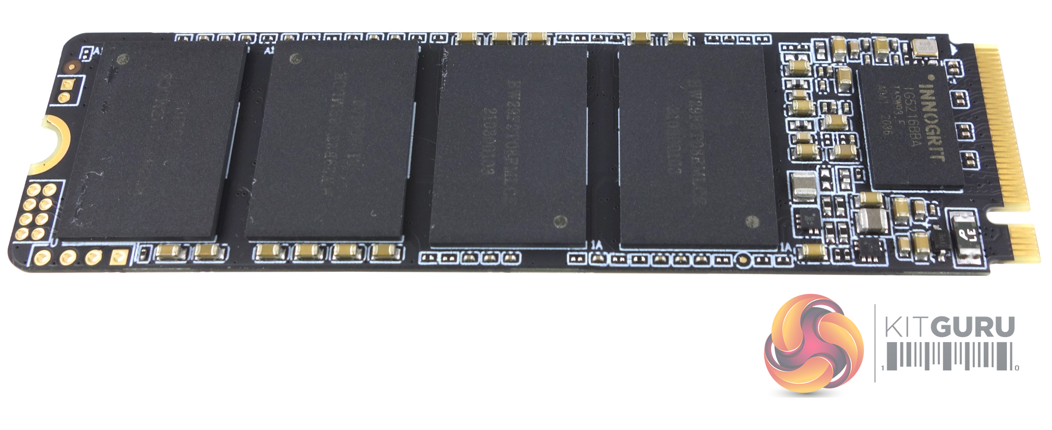Under the product label on the front of the drive sit four 256GB BIWIN branded NAND packages and the Innogrit Shasta+ controller. The Innogrit Shasta+ (IG5216BBA) is a DRAMless design built on a 28nm process supporting up to 2TB of SLC, MLC, TLC and QLC NAND with ONFI 4.1 and Toggle 4.0 using four NAND channels. As it's a DRAMless design it makes use of Host Memory Buffer (HMB) technology for mapping tables.