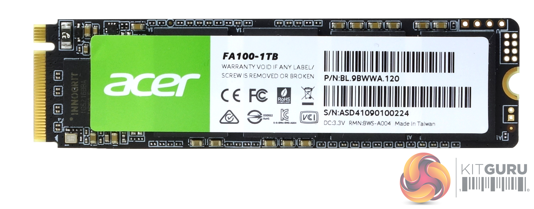 The 1TB Acer FA100 is a single-sided design with all the components built on one side of the M.2 2280 PCB. To help dissipate the heat generated by the drive, the label on the back of the drive has a layer of copper under it.