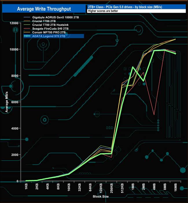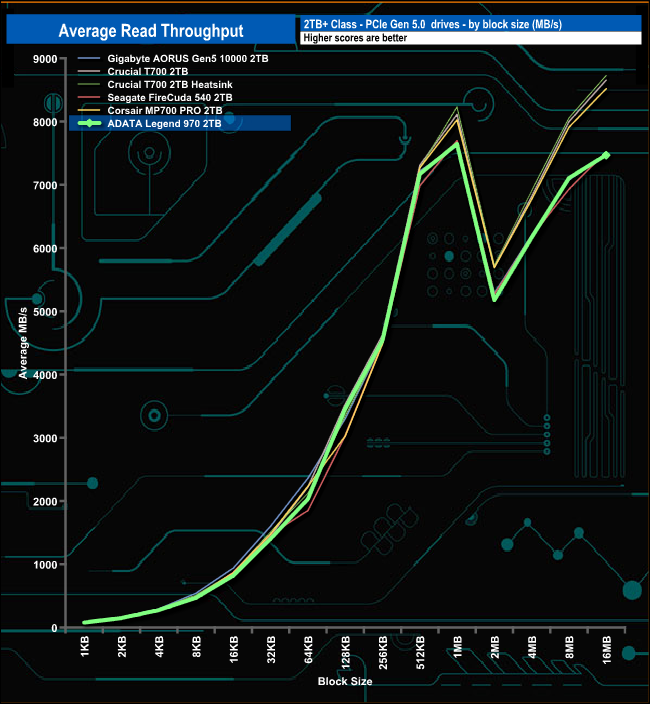 That Sequential read throughput test result sees the drive just above the Gigabyte AORUS Gen5 10000drive.