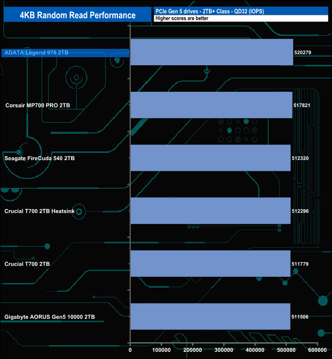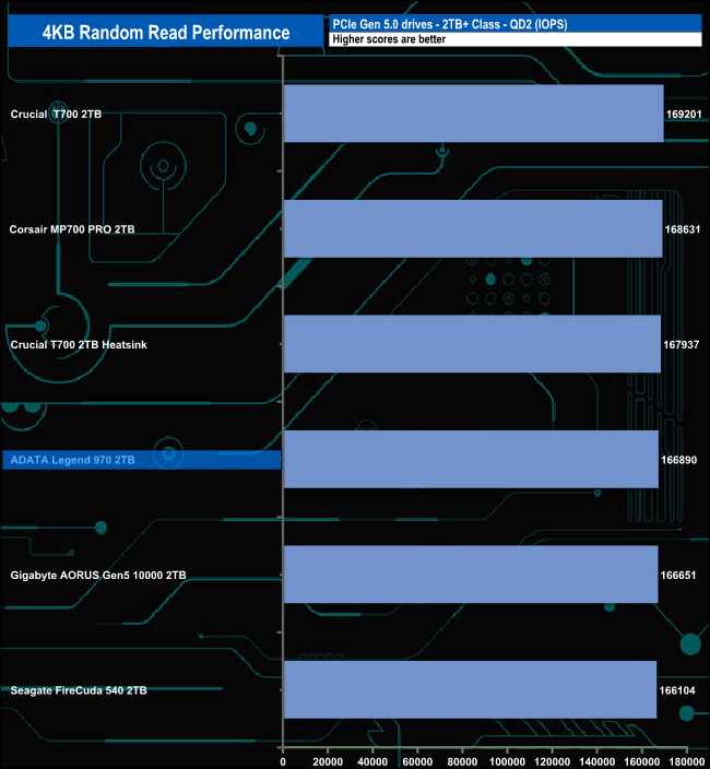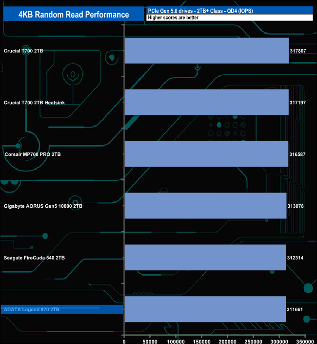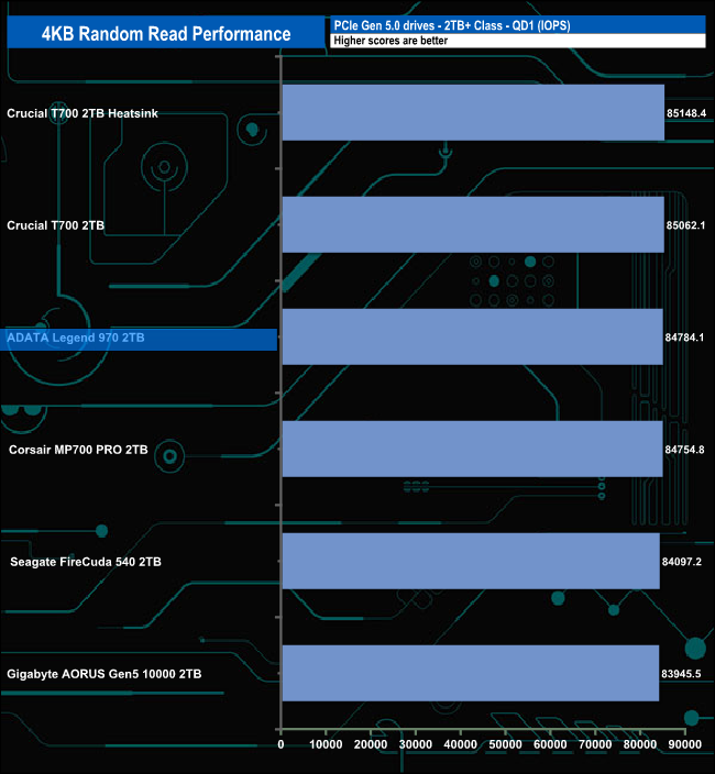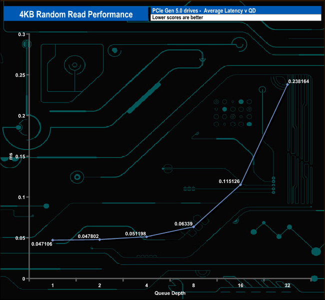 At QD1 the drive sits in third place behind both Crucial T700 drives but as the queue depth deepens it begins to drop down the chart so by QD4 it sits at the bottom of the results. However, by QD32 it has staged an excellent recovery as it sits on top of the table as the fastest Gen 5 drive we've tested to date at this queue depth using this particular test.