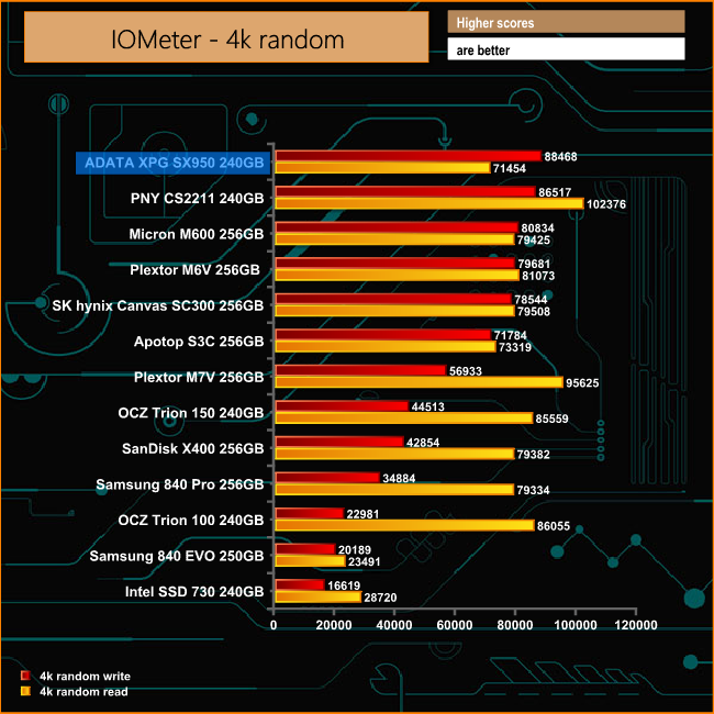 However, the write score of 88,468 IOPS is the fastest we have seen for a consumer 2.5in drive in this capacity segment.