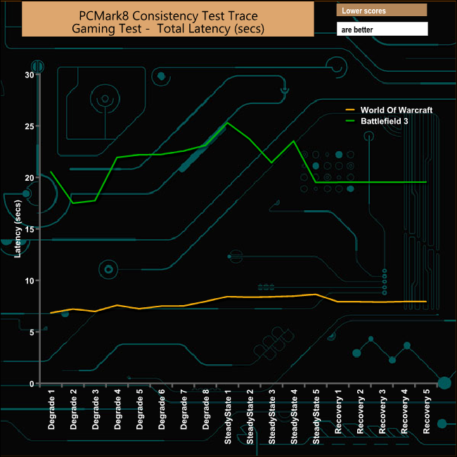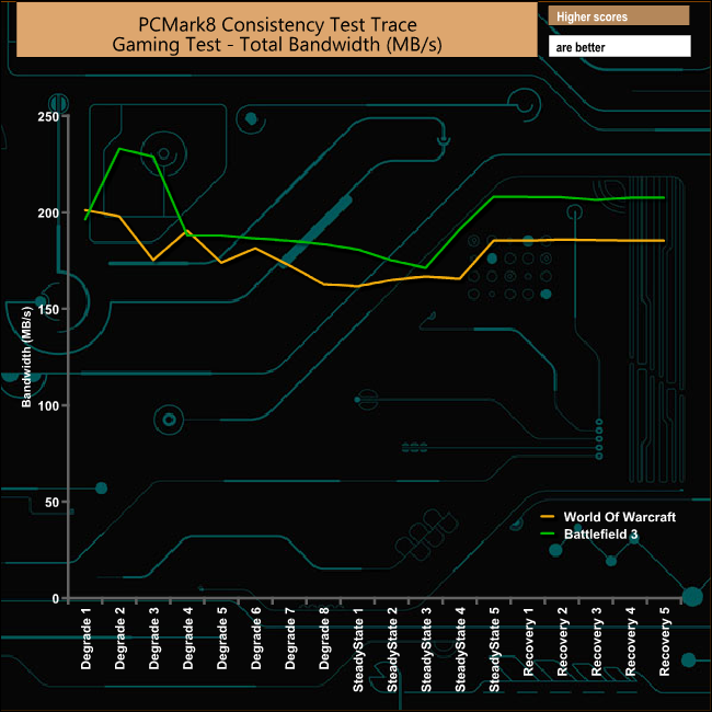 In the casual gaming tests of the benchmark, the drive's performance did tack a knock during the degradation and steady state cycles particularly when tested with the Battlefield 3 traces but it recovered well from the ordeal.