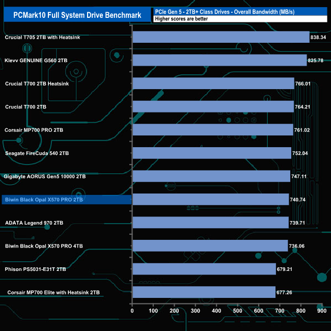 With an overall bandwidth figure of 740.74MB/s, the 2TB X570 PRO is a tiny bit faster than the 4TB version of the drive.