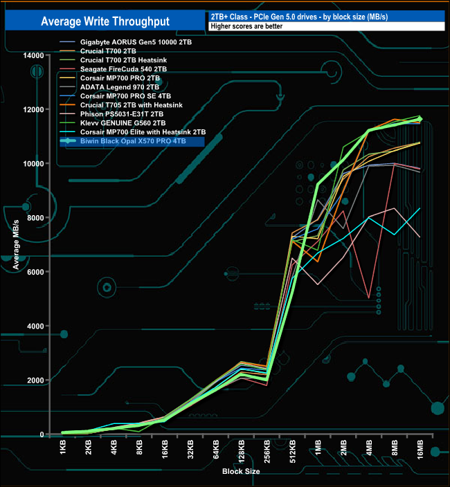 Even though the peak read result is nowhere near the official maximum figure of 14,000MB/s, it's still good enough to place the drive in the fourth spot on the results table.