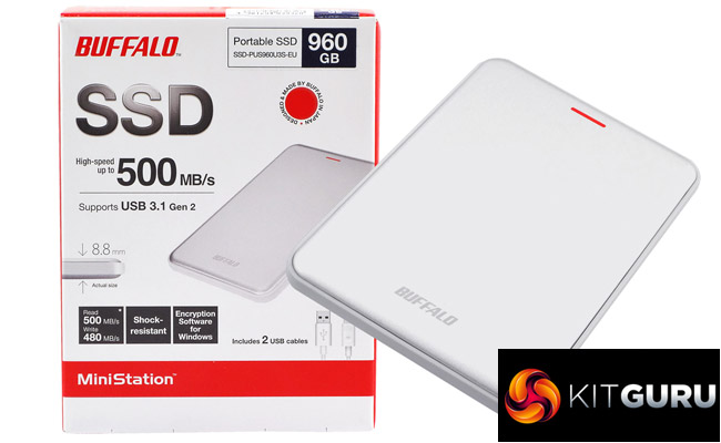 Buffalo's MiniStation Velocity range is the flagship of company's portable SSD range of storage drives. Based around an SSD drive, the MiniStation Velocity uses a USB 3.1 (Gen 2) interface and Buffalo claim it to be the slimmest portable SSD of its class at just 8.8mm thick.