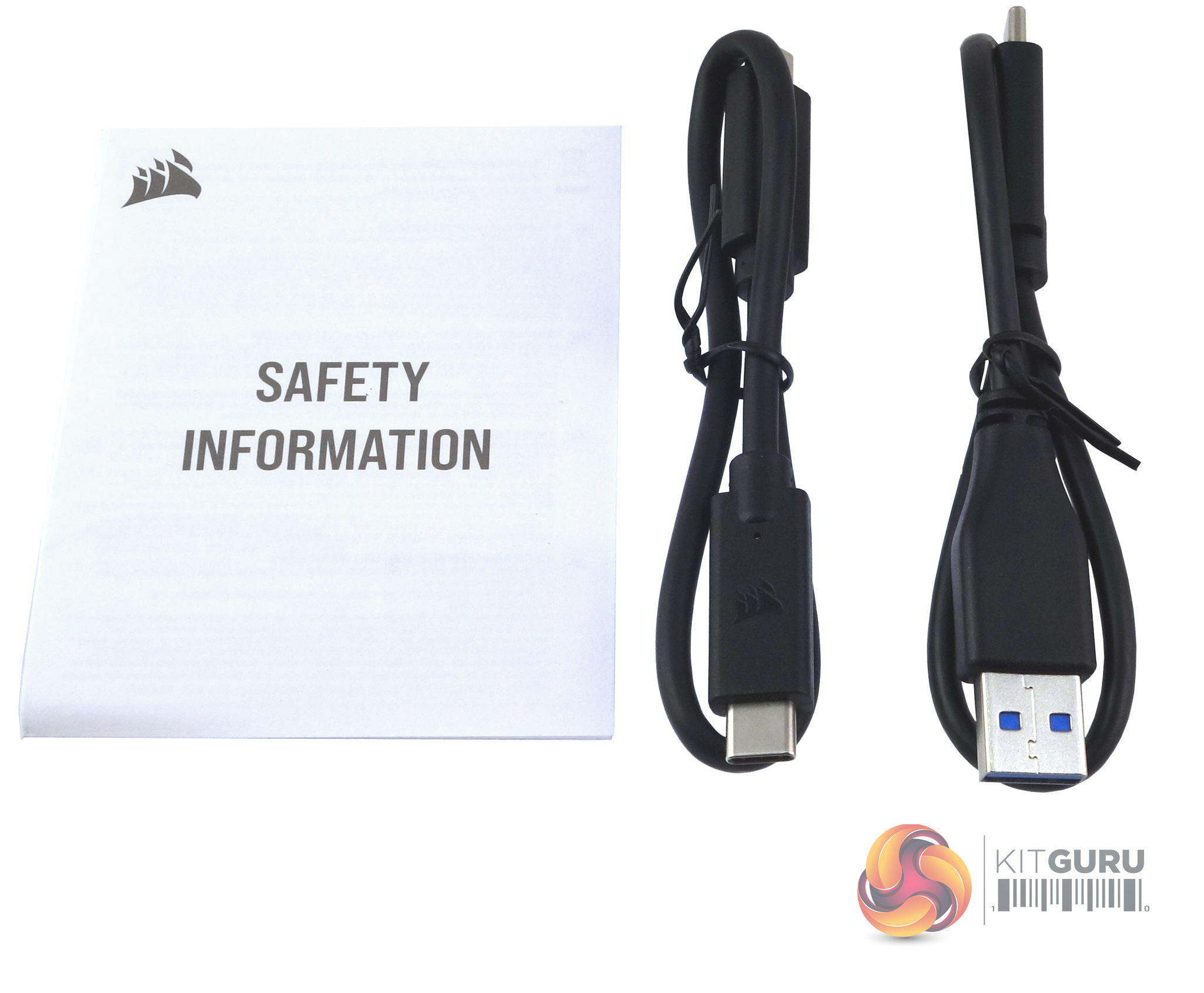 The EX100U comes in the customary Corsair yellow and black finished box. On the front of the box is an image of the drive under which are the headline Sequential read and write speeds (up 1,600MB/s reads, up to 1,500MB/s writes). Next to these is the capacity of the drive. The rear of the box has a multilingual description of the drive under which is a systems requirements box which lists the OS supported by the drive (Windows 10 or later, PS4, PS5, Xbox One Xbox X/S and macOS Mojave 10.4 or later). There is also a small diagram displaying what's in the box.