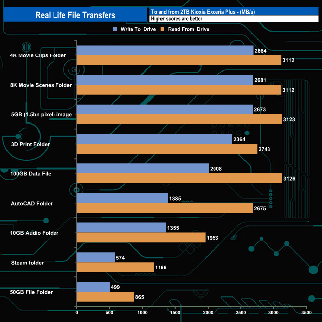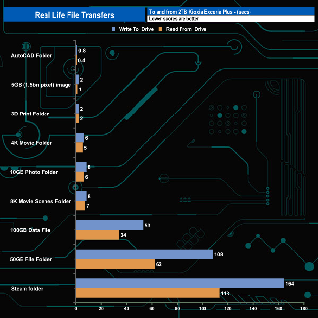 To test the real-life performance of a drive we use a mix of folder/file types and by using the FastCopy utility (which gives a time as well as MB/s result) we record the performance of drive reading from & writing to a 2TB Seagate FireCuda 510.