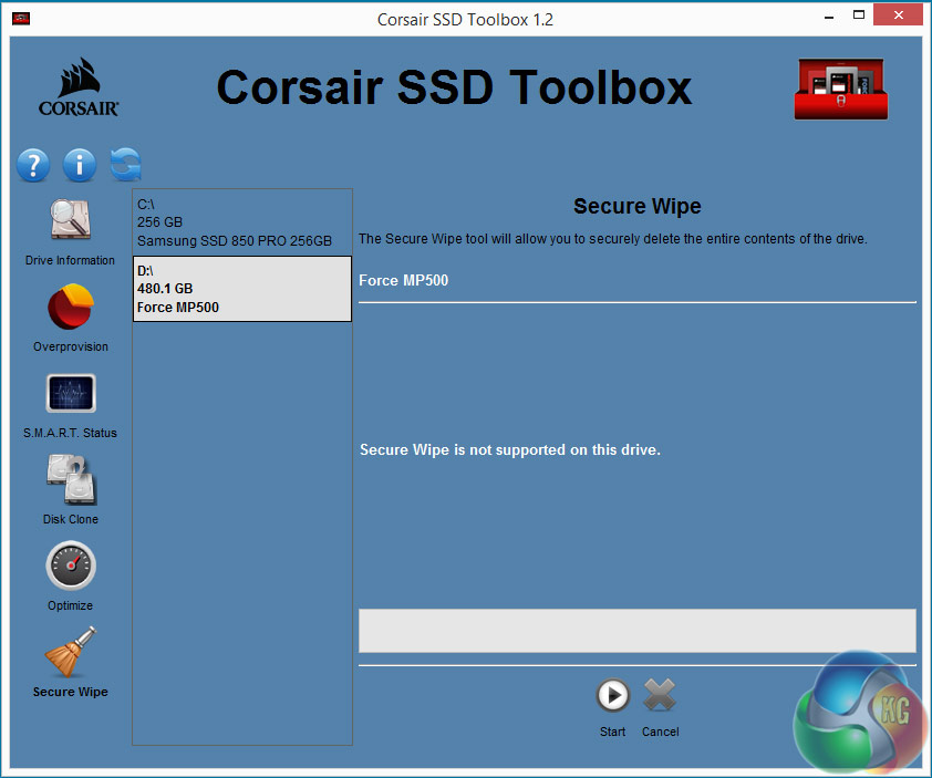 Corsair's SSD management utility is called SSD Toolbox. At the time of writing, we used the latest 1.2.4.7 version of Toobox but it's in desperate need of a refresh as it hardly provided any details for the drive. It couldn't provide the drive S.M.A.R.T details, doesn't allow for changes to the Trim commands or over provisioning, or even securely erase the drive.