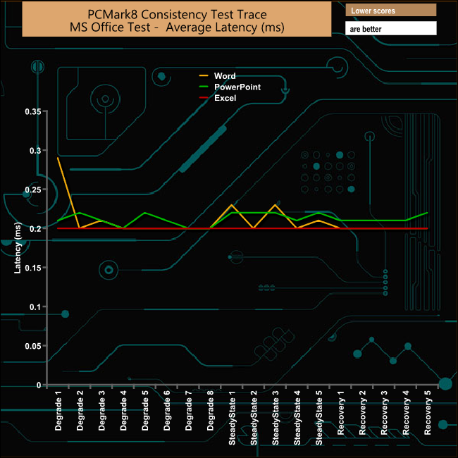 As is usual in the Microsoft Office section of the benchmark it's the Word test trace that causes problems. Having said that the MP510 deals with it more efficiently than many drives we've seen recently.
